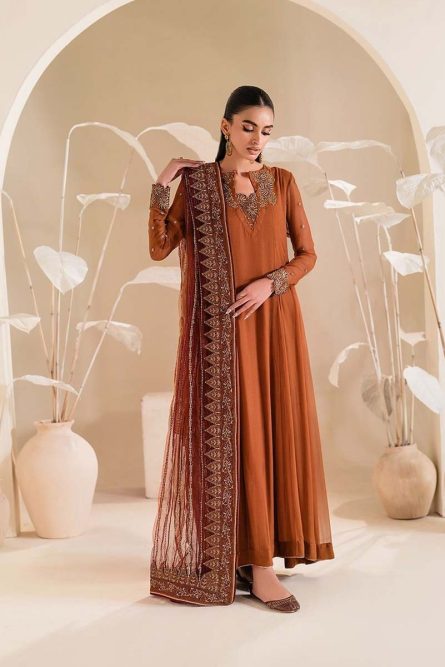 Self Embroidered Dupatta with embroidered scallops all around. 3 yards.