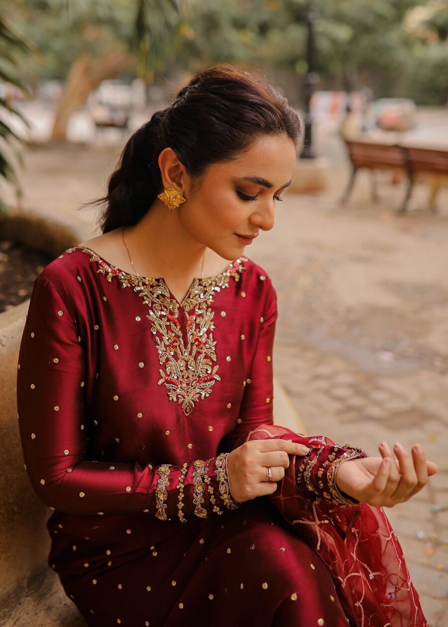 • Dupatta: Exquisite Embroidered Organza that adds a touch of airy volume and a regal finish.